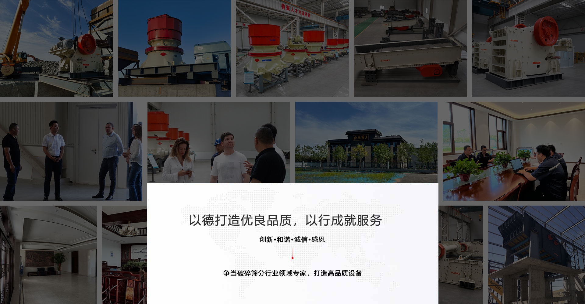 企業(yè)使命:為客戶創(chuàng)造價(jià)值;為員工發(fā)展和幸福而創(chuàng)造平臺(tái);為傳統(tǒng)先進(jìn)文化理念和社會(huì)進(jìn)步和諧貢獻(xiàn)力量打造專業(yè)產(chǎn)品;為礦山業(yè)創(chuàng)較大效益。